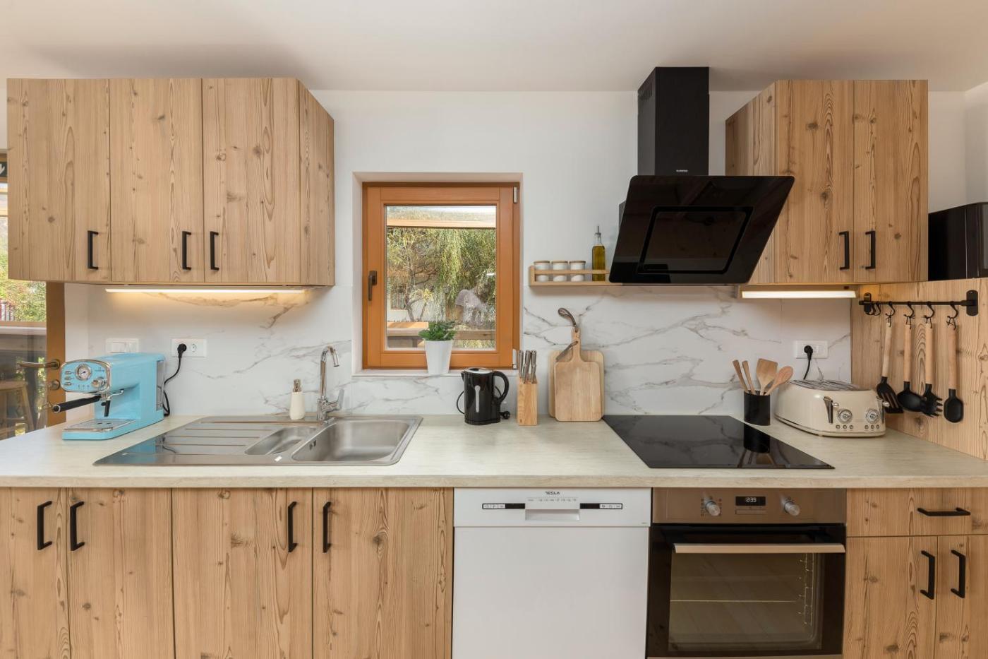 Two-Bedroom House. This holiday home features a hot tub. Boasting a private entrance, this air-conditioned holiday home includes 1 living room, 2 separate bedrooms and 1 bathroom with a walk-in shower and a hairdryer. In the well-fitted kitchen, guests will find a stovetop, a refrigerator, a dishwasher and kitchenware. Featuring a terrace with mountain views, this holiday home also offers a washing machine and a flat-screen TV with cable channels. The unit has 4 beds.