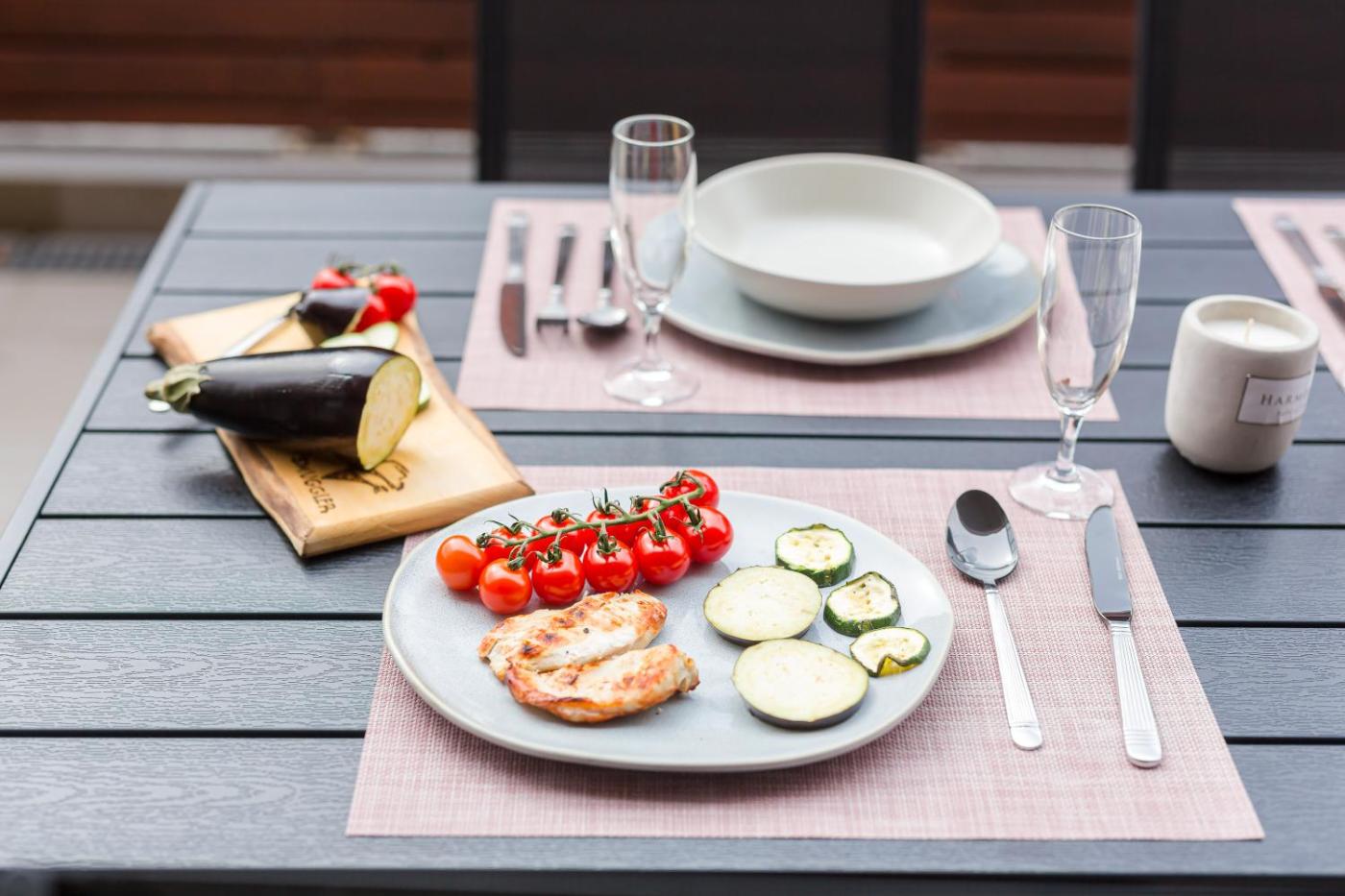 One-Bedroom Apartment. Boasting a private entrance, this air-conditioned apartment includes 1 living room, 1 separate bedroom and 1 bathroom with a bath and a hairdryer. Guests will find a stovetop, a refrigerator, a dishwasher and kitchenware in the kitchen. The apartment also features a barbecue. Featuring a terrace with ancourtyard view, this apartment also offers a washing machine and a flat-screen TV with cable channels. The unit has 2 beds.