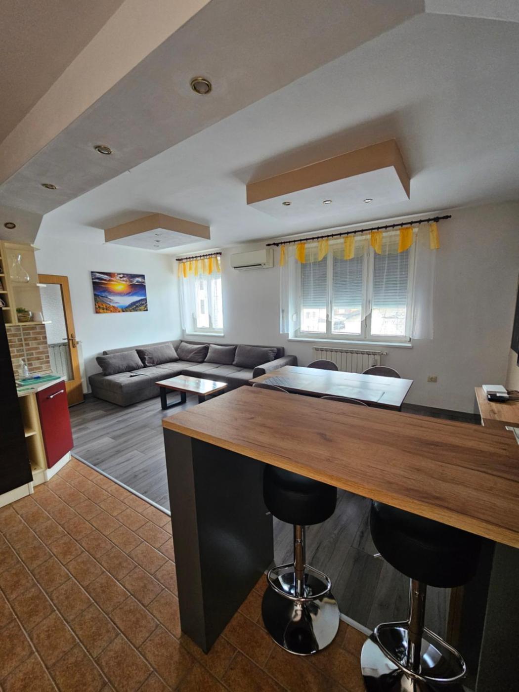 Two-Bedroom Apartment. The hot tub is a top feature of this apartment. Boasting a private entrance, this air-conditioned apartment comes with 1 living room, 2 separate bedrooms and 1 bathroom with a bath and a bidet. Guests will find a stovetop, a refrigerator, a dishwasher and kitchenware in the kitchen. The apartment also includes a barbecue. The spacious apartment features a flat-screen TV with streaming services, a washing machine, soundproof walls, a tea and coffee maker as well as garden views. The unit has 3 beds.