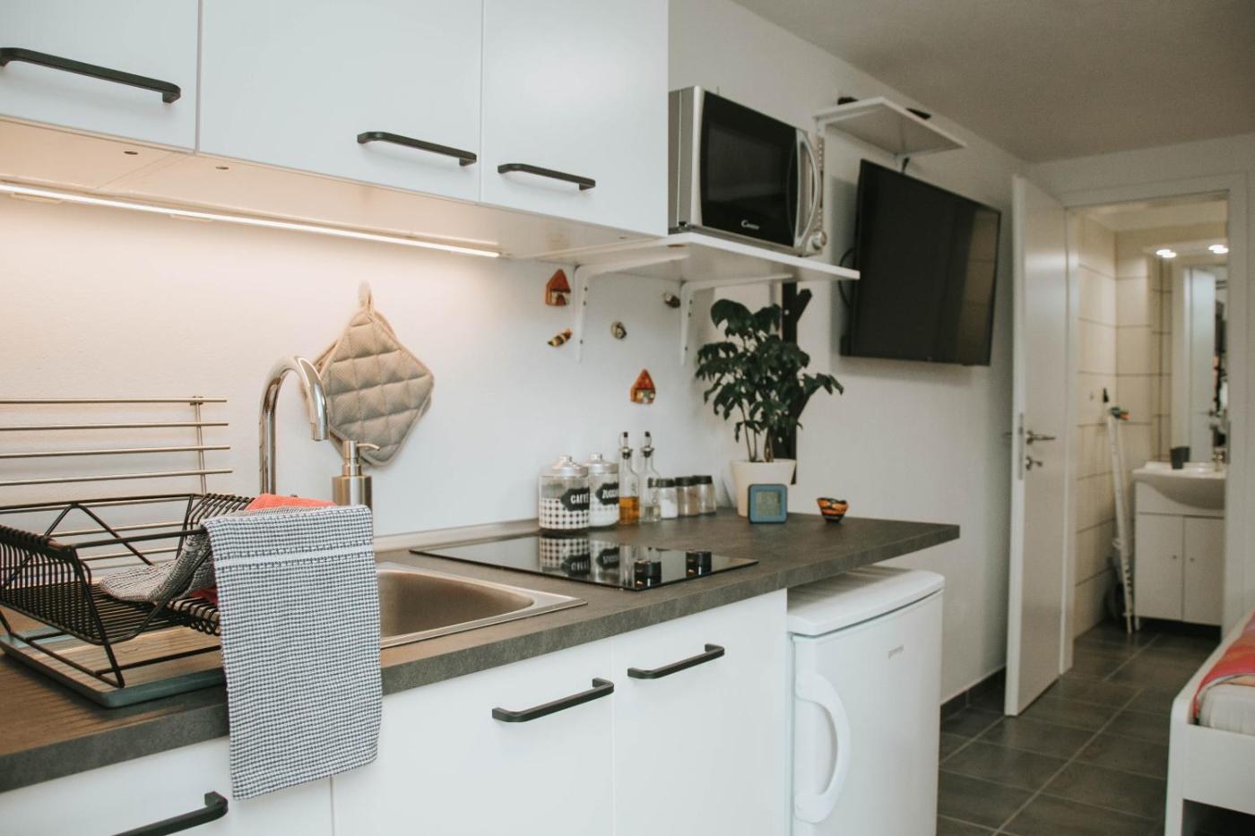 One-Bedroom Apartment. Featuring a private entrance, this apartment also is comprised of 1 bedroom, a seating area and 1 bathroom with a shower and a hairdryer. In the kitchen, guests will find a refrigerator, kitchenware, a microwave and an electric kettle. Boasting a terrace with garden views, this apartment also offers a dining area and a flat-screen TV with streaming services. The unit offers 1 bed.