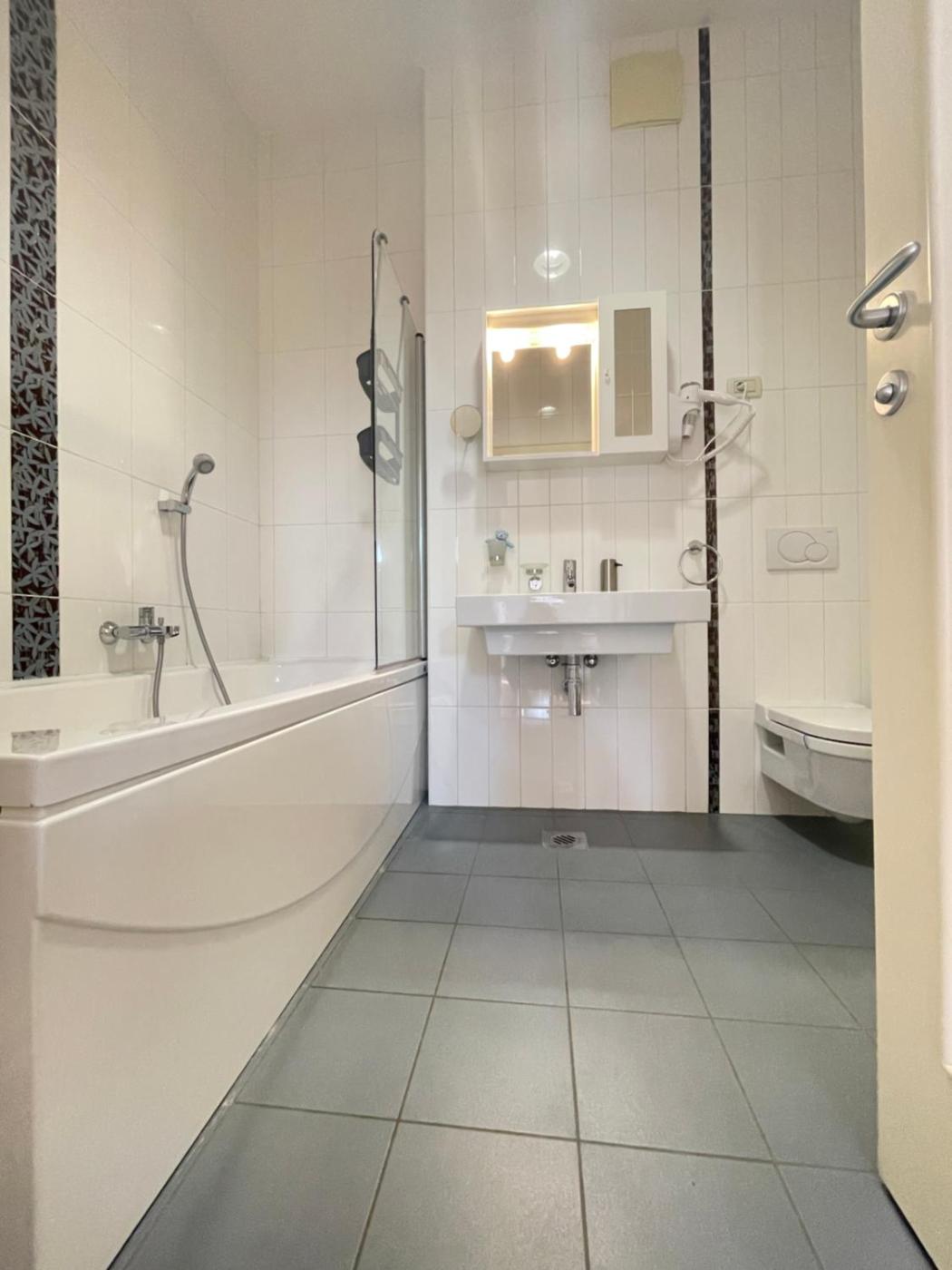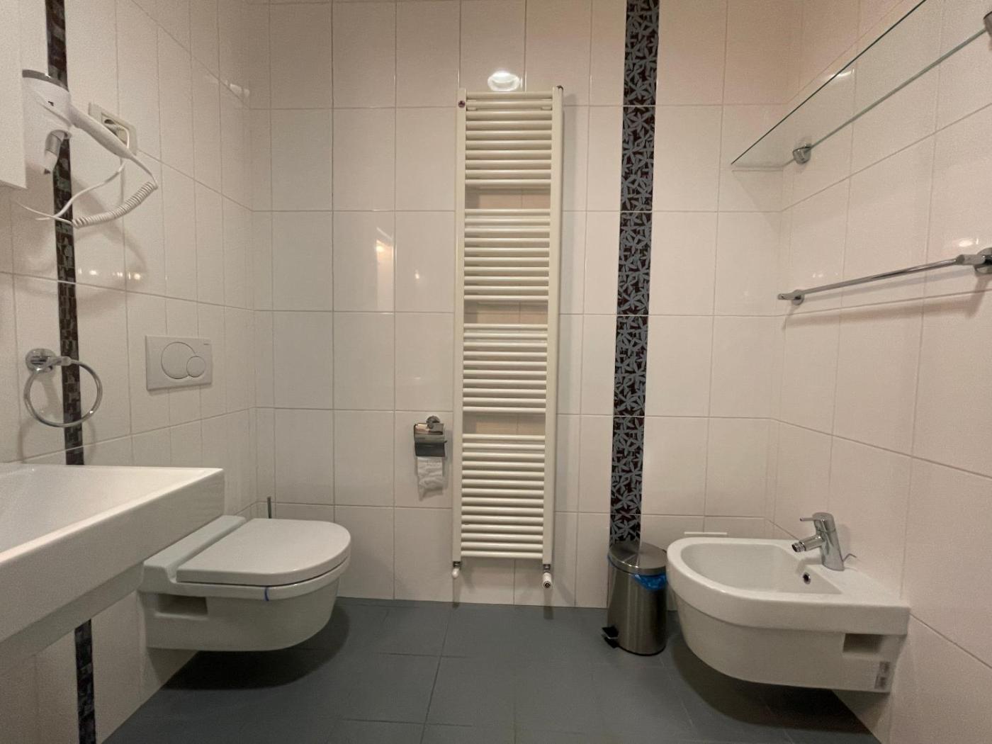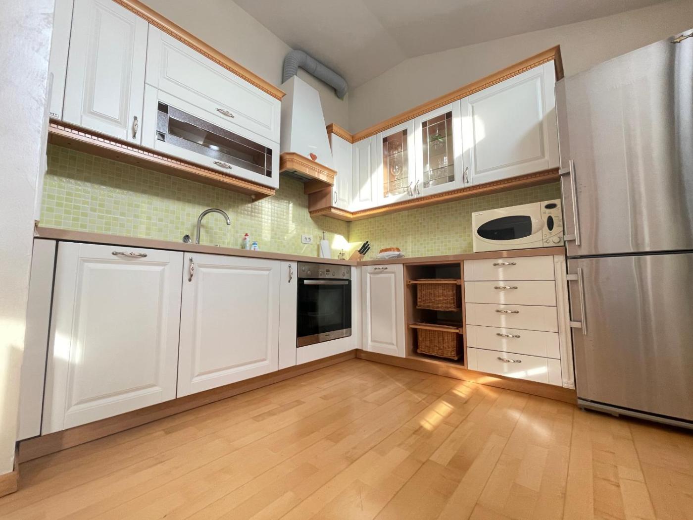 Two-Bedroom Apartment. The air-conditioned apartment has 2 bedrooms and 1 bathroom with a bath and a hairdryer. The kitchen has a refrigerator, a microwave and a tea and coffee maker. Boasting a balcony with ancourtyard view, this apartment also features a washing machine and a flat-screen TV. The unit has 2 beds.