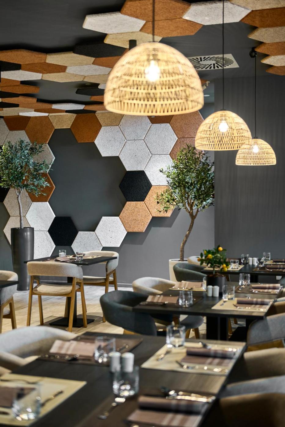 Screens or physical barriers placed between staff and guests in appropriate areas