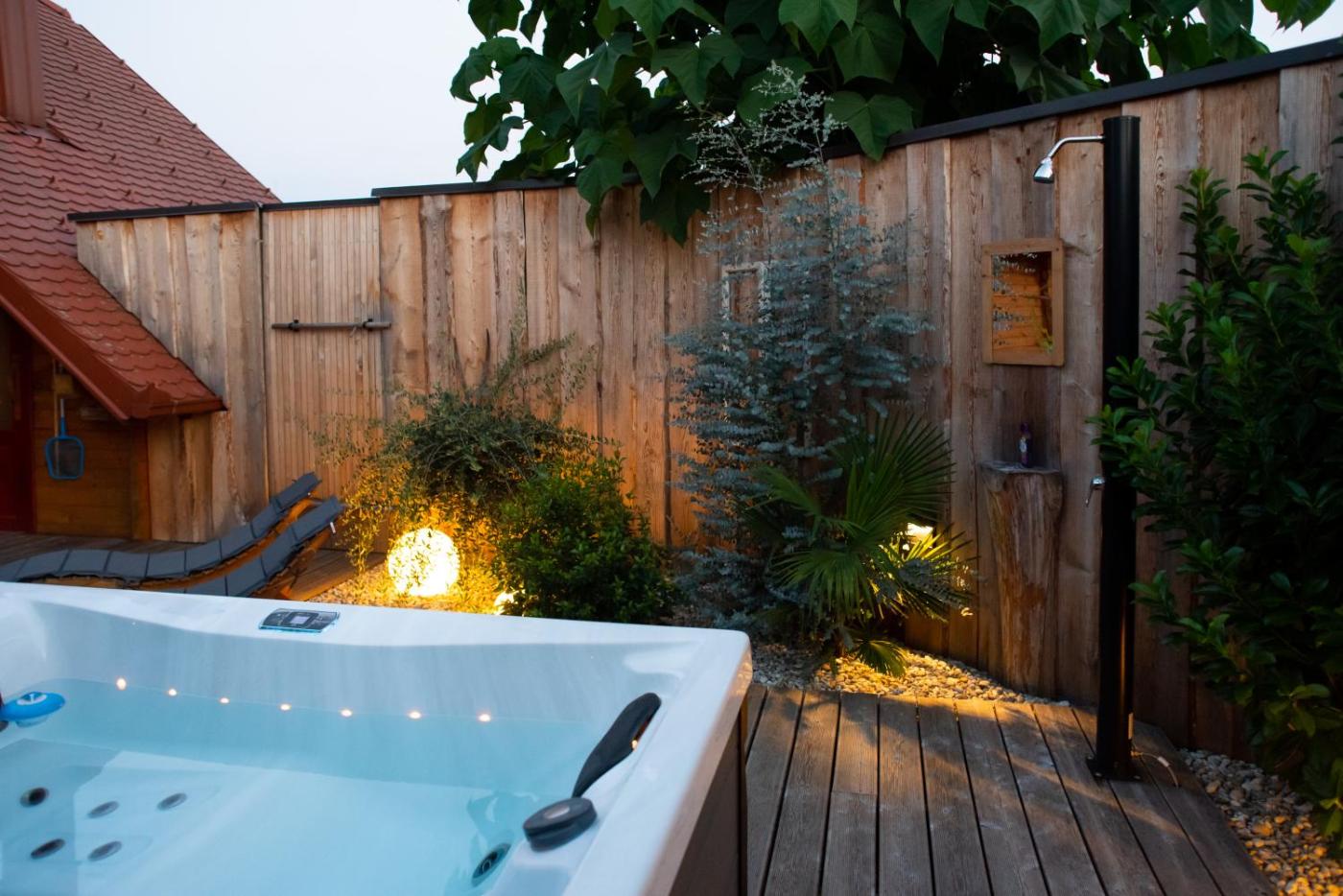 Three-Bedroom House. This luxurious holiday home has a hot tub, a spa bath and a sauna. This holiday home comes with 1 living room, 3 separate bedrooms and 2 bathrooms with a shower and free toiletries. Guests will find a stovetop, a refrigerator, kitchenware and an oven in the kitchen. The holiday home also includes a barbecue. Boasting a terrace with garden views, this holiday home also features air conditioning and a flat-screen TV. The unit has 4 beds.